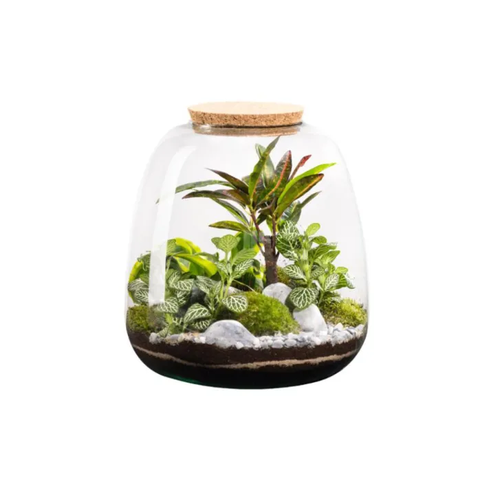 Porte bougie en céramique bicolore naturel/vert petit modèle – Ø 10 x H 17,5 cm