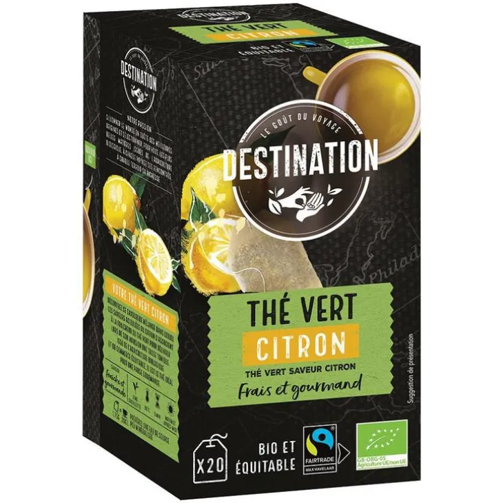 | Composition | Thé vert* (93%), arôme naturel de citron* (6%), écorces de citron* (1%) – *issus de l’agriculture biologique. Absence d’allergènes ou d’OGM
