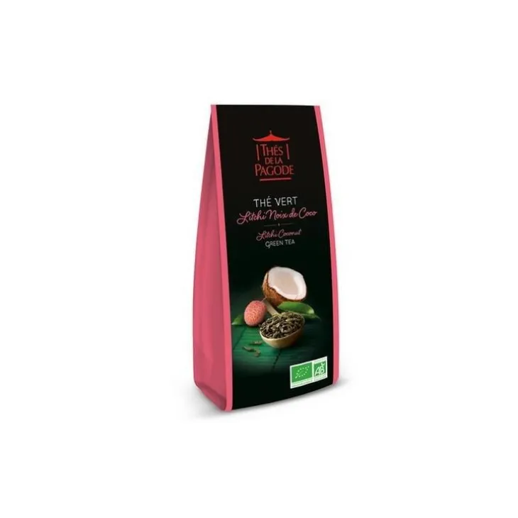 | Composition | Thé vert Chun Mee bio, éclats de noix de coco bio, arôme naturel (saveur litchi), arôme naturel (saveur noix de coco)