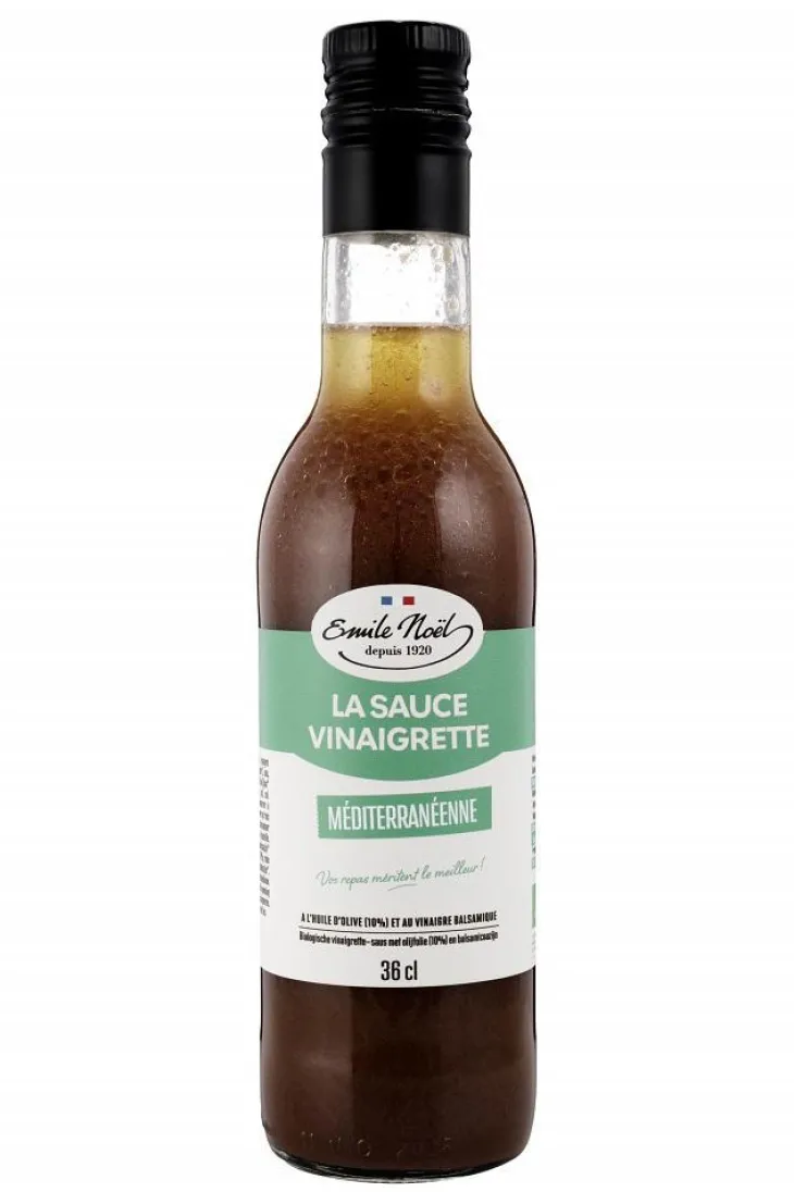 | Composition | Huile de tournesol* (40%), vinaigre balsamique* (19,5%) (vinaigre de vin*, moût de raisin*), eau, huile d’olive* (10%), vinaigre de vin rouge*, MOUTARDE de Dijon* (graines de MOUTARDE*, vinaigre d’alcool*, eau, sel), sel. *Issus de l’agriculture biologique