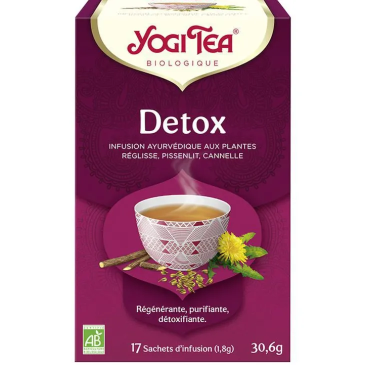 | Conseils d’entretien | Le YOGI TEA® Detox est un mélange de plantes et d’épices traditionnellement utilisées depuis des siècles pour favoriser la purification. Des plantes purifiantes comme la bardane stimulent la digestion et aident à la détoxification. Le fenouil stimule la digestion et l’élimination. La réglisse douce et le gingembre épicé arrondissent cette infusion populaire au goût sublime. Le message subtil de cette infusion est : « Le tendre renouvellement ».