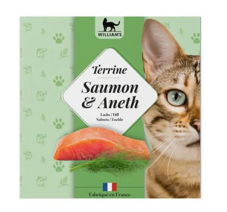 | Composition | Saumon de fontaine (58,05%), bouillon (40%), tapioca (1,2%), Aneth (0,25%)