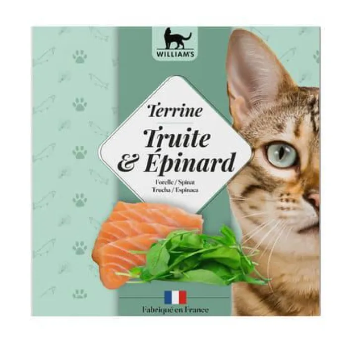 | Composition | Truite (53,7%), bouillon (40%), epinards (4,5%), tapioca (1,3%)