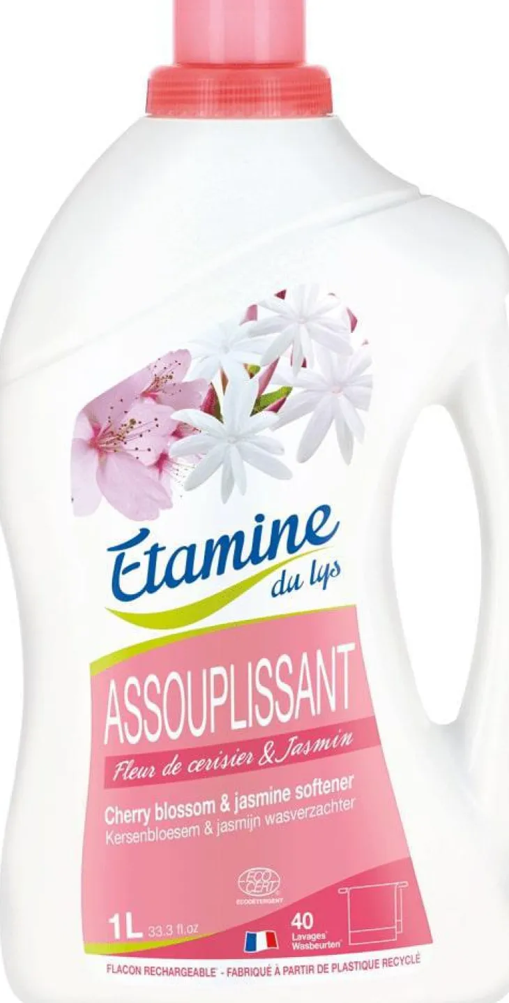 | Composition | 5-15% : agents de surface cationiques (palmiste). < 5% : parfum 100% d’origine naturelle aux notes de fleur de cerisier & jasmin. Contient aussi : eau, solvant, extrait glyceriné de cerisier bio*. 96% du total des ingrédients sont d'origine naturelle *0,04% du total des ingrédients sont issus de l’Agriculture Biologique Détergent certifié par ECOCERT Greenlife selon le référentiel ECOCERT «Ecodétergent» disponible sur http://detergents.ecocert.com
