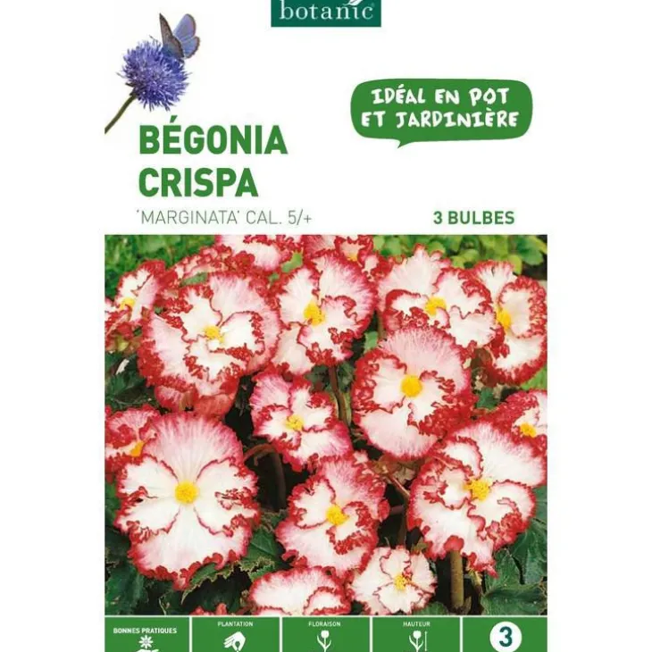 | Conseils d’entretien | N’hésitez pas à ajouter de l’engrais universel liquide pour obtenir de meilleurs résultats. Vous obtiendrez de bien meilleurs résultats en faisant germer vos bégonias avant de les planter car le départ en végétation est lent. Conservez les bulbes dans un endroit frais et sec jusqu’à la plantation.