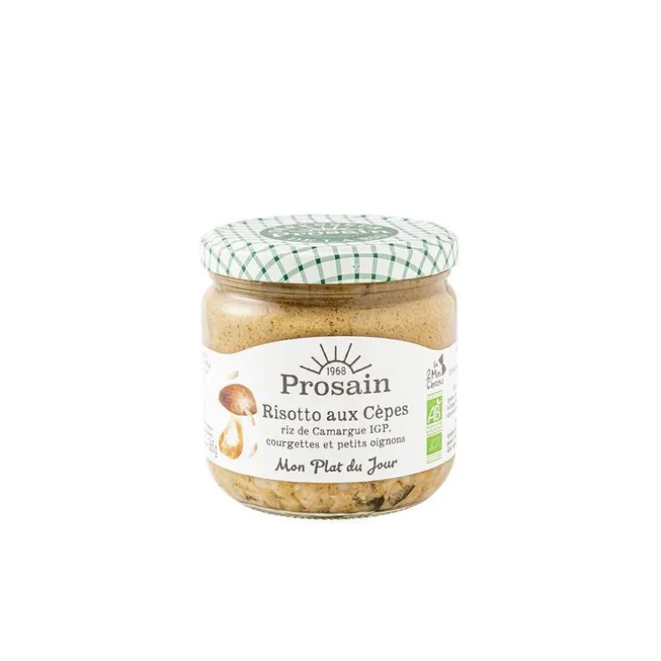 | Composition | eau, courgettes* 23%, riz* complet 11%, champignons* de Paris, oignons* 8%, carottes*, crème fraîche (lactose), cèpes réhydratés* 2,9% , fromage parmesan* Reggiano AOC (lactose), huile d’olive* vierge extra extraite à froid, vin blanc* (sulfites), sel de mer, épices*. *Ingrédients issus de l’agriculture biologique.