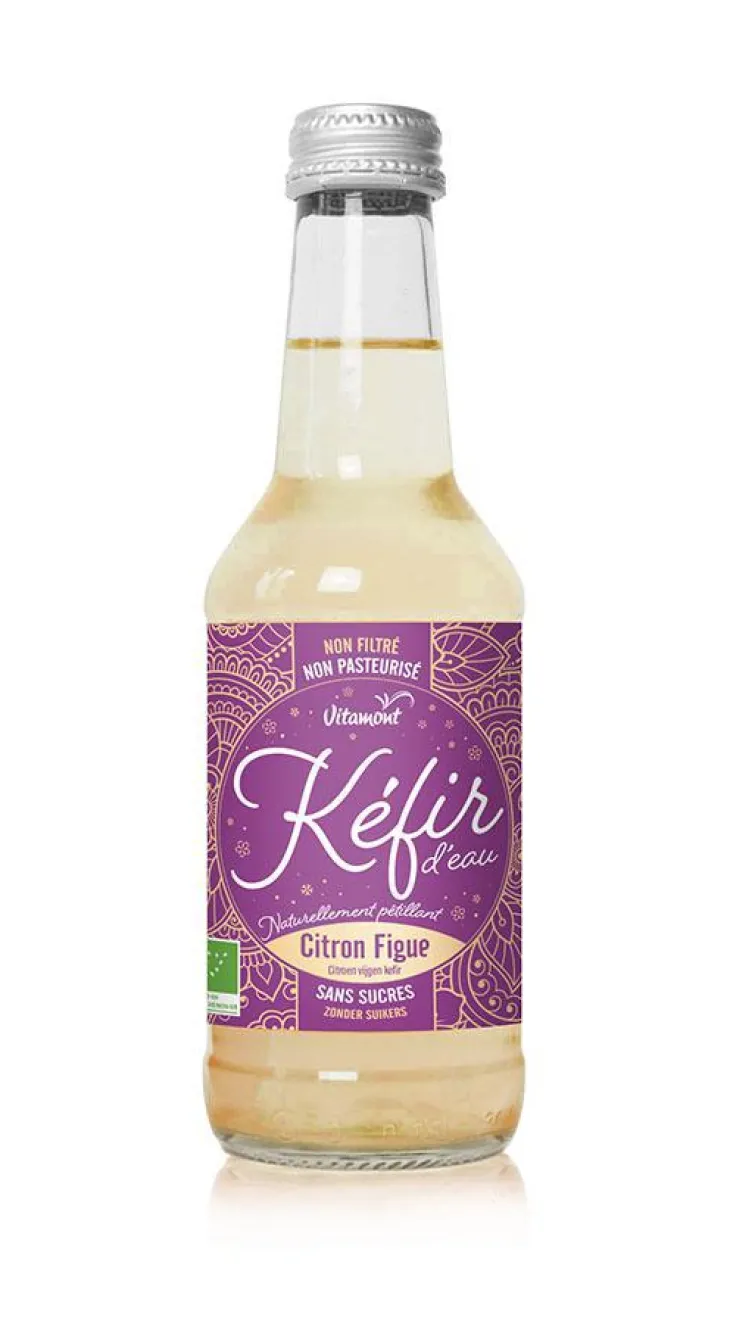 | Composition | eau, sucre de canne* (disparaît lors de la fermentation), grains de kéfir*, jus de citron vert* (1%), jus de myrtille*, citron entier rondelle* (0,5%), jus de gingembre frais*, extrait de citron* (0,05%), jus de figue* (0,04%).