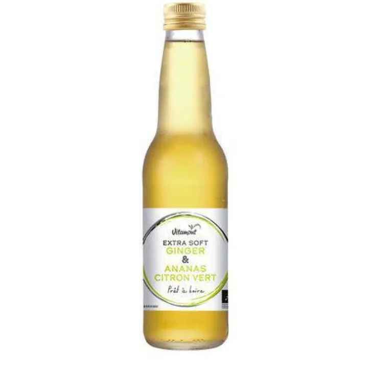 | Composition | jus de fruits* (jus d’ananas* 48%, jus de citron vert* 4%), eau, jus de gingembre* (2,7%)