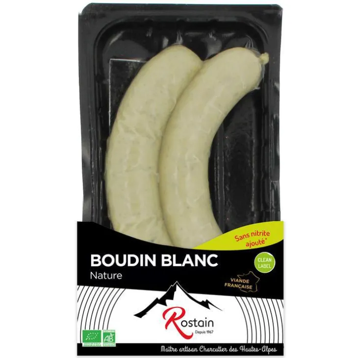 | Composition | *LAIT, *Gras de porc (15% – origine France), *Viande de volaille (14% – origine France), *Pain (farine de BLE), *Oignons, *Couenne de porc (origine France), *Viande de porc (origine France), *OEUFS, *Carottes, *Cognac (contient des sulfites), Sel de mer, *Persil, *Sucre de Canne, *Thym, *Poivre Blanc, *muscade, *girofle, *gingembre, *fenouil, *laurier, *romarin, *origan, *basilic, Boyau naturel de porc * ingrédients issus de l’agriculture biologique