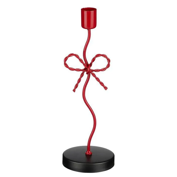 Bougeoir rouge avec pied à motif nœud - 8 x 7 x 25 cm