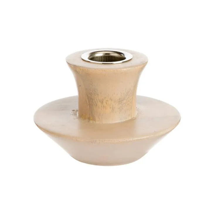 Porte bougie en céramique bicolore naturel/vert petit modèle – Ø 10 x H 17,5 cm