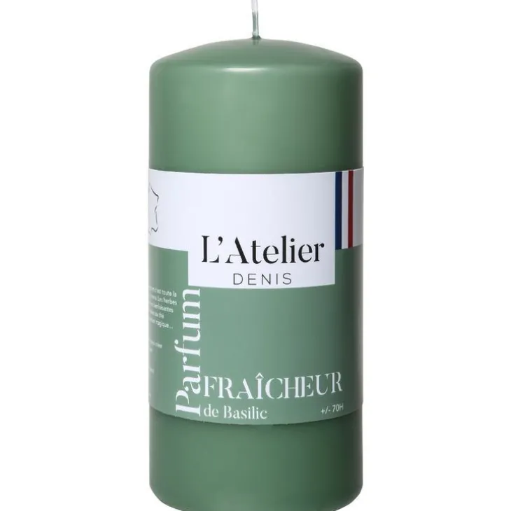 Porte bougie en céramique bicolore naturel/vert petit modèle – Ø 10 x H 17,5 cm