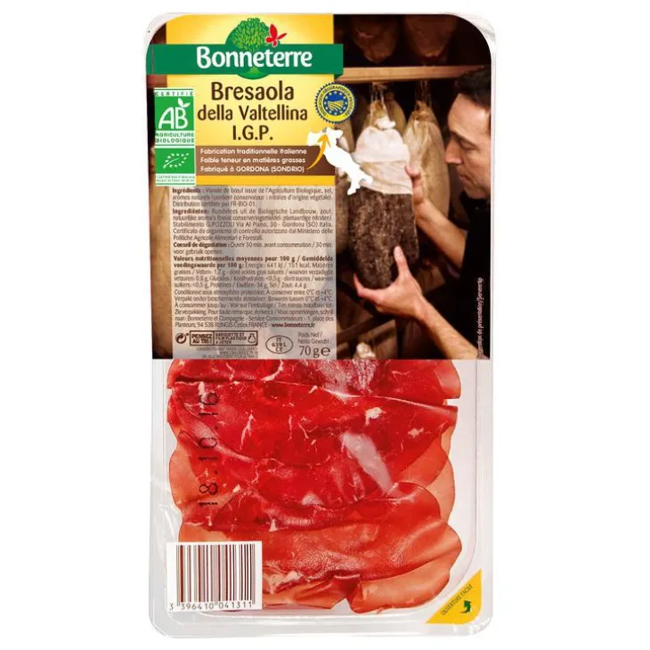 | Composition | Viande de bœuf*, sel, arôme naturel (contient conservateur : nitrates d’origine végétale).*Ingrédients issus de l’agriculture biologique.