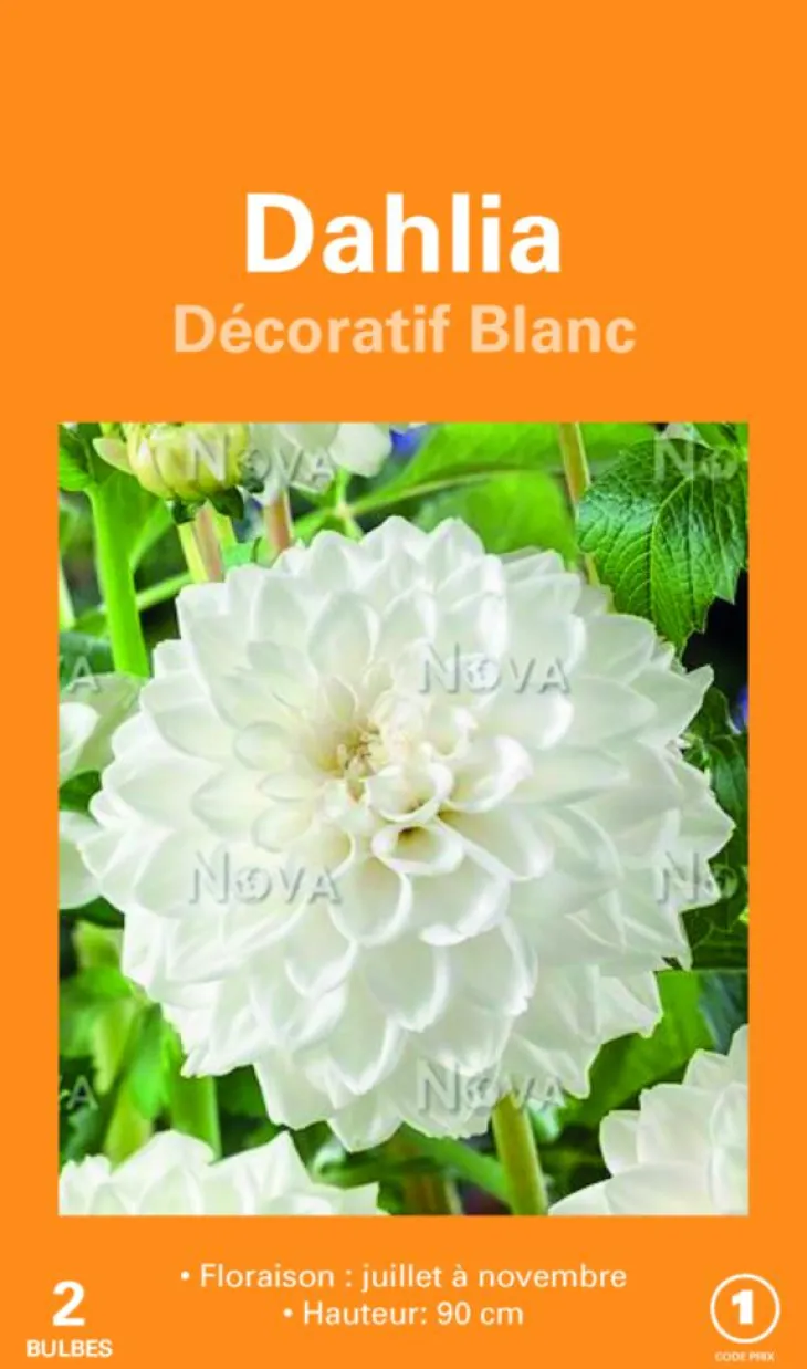 | Conseils d’entretien | Choisissez un emplacement ensoleillé dans un sol riche et bien drainé. Les bulbes de dahlias se plantent après les fortes gelées. Dans un sol ameubli, placez un tuteur au centre d’une cuvette de Ø 40 cm puis le bulbe et recouvrez-le de 5 cm de terre. Dès que la végétation s’étoffe, arrosez de préférence au pied sans mouiller le feuillage, le soir pour éviter l’évaporation. Dès le début de l’été, surveillez l’apparition de ravageurs. Arrosez copieusement à la plantation puis régulièrement pendant la végétation avec une solution d’engrais, sans mouiller le feuillage. A l’apparition des jeunes plantules, protégez des limaces et escargots. Pour des plantes plus trapues et florifères, pincez-les en début de végétation : coupez l’extrémité de la tige dès l’apparition de la quatrième feuille. Éliminez les fleurs fanées pour prolonger la floraison. Dès les premières gelées, arrachez les tubercules et remplacez-les par des bulbes à floraison printanière : tulipes, narcisses, crocus… Pailler votre sol pour le protéger et limiter le développement d’adventices. La date de floraison et hauteur varient selon le sol, l’exposition et le climat.