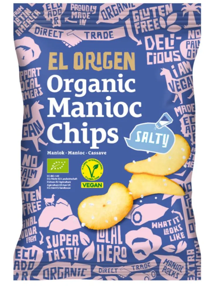 | Composition | Ingrédients Manioc bio* (70 %), huile de graines de tournesol bio*, sel de mer* *issu de l’agriculture biologique contrôlée