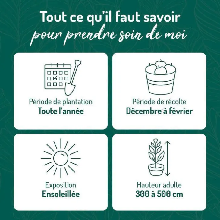 | Période de plantation | SEPTEMBRE JUIN JUILLET AVRIL JANVIER MAI DÉCEMBRE AOÛT FÉVRIER OCTOBRE MARS NOVEMBRE