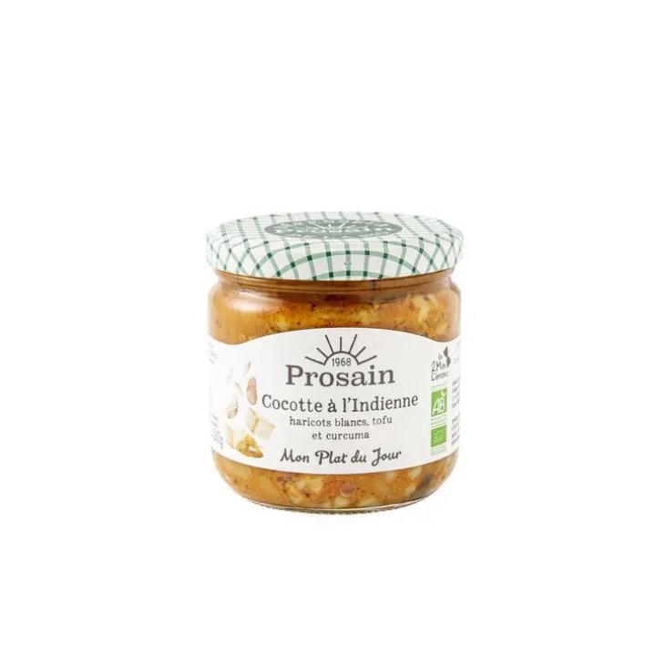| Composition | haricots blancs* réhydratés 23%, eau , oignons * 16%, tomate* 15% (dés de tomate*, concentré*), huile d’olive* vierge extra extraite à froid, carottes *, champignons de Paris*, tofu * fumé 4% [eau, soja *, gélifiant : chlorure de magnésium, tamari * (eau, soja *, sel de mer, saké distillé*, Aspergillus oryzae )], riz* de Camargue IGP 3%, tofu * 1% (eau, soja*, gélifiant : chlorure de calcium), ail*, sel de mer, épices* 1 %, miel *Ingrédients issus de l’agriculture biologique