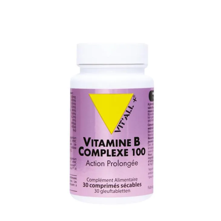 | Composition | Inositol 100.00mg, Choline (Bitartrate) 100.00mg, Vitamine B3 (Nicotinamide) – AR: 625.00% 100.00mg, PABA (acide para-amino benzoïque) 100.00mg, Vitamine B5 (Acide pantothénique) – AR: 600.00% – D-Pantothénate de calcium 36.00mg, Vitamine B2 (Riboflavine) – AR: 684.00% 9.60mg, Vitamine B1 (Thiamine HCl) – AR: 744.00% 8.20mg, Vitamine B6 (Pyridoxine HCl) – AR: 284.00% 4.00mg, Vitamine B8 (Biotine) – AR: 1800.00% 900.00µg, Vitamine B9 – Quatrefolic® – AR: 200.00% – glucosamine (6S)-5-méthyltétrahydrofolate- Forme bioactive 400.00µg, Vitamine B12 (Méthylcobalamine) – AR: 240.00% – forme bioactive 6.00µg