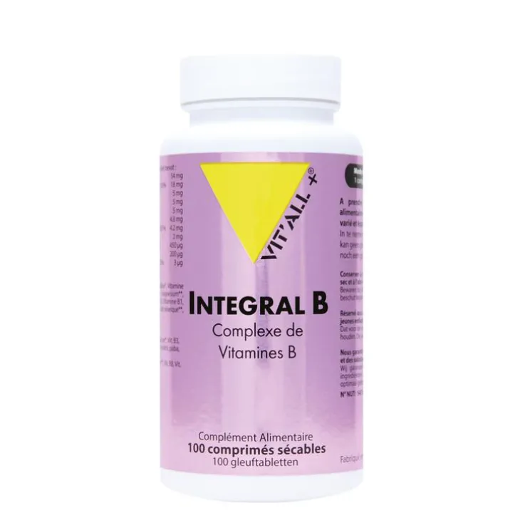 | Composition | Vitamine B3 (Nicotinamide) – AR: 337.00% 54.00mg, Vitamine B5 (Acide pantothénique) – AR: 300.00% 18.00mg, Inositol 5.00mg, PABA (acide para-amino benzoïque) 5.00mg, Choline (Bitartrate) 4.90mg, Vitamine B2 (Riboflavine) – AR: 342.00% 4.80mg, Vitamine B1 (Thiamine mononitrate) – AR: 381.00% 4.20mg, Vitamine B6 (Pyridoxine HCl) – AR: 142.00% 2.00mg, Vitamine B8 (Biotine) – AR: 900.00% 450.00µg, Vitamine B9 – Quatrefolic® – AR: 100.00% – glucosamine (6S)-5-méthyltétrahydrofolate 200.00µg, Vitamine B12 (Méthylcobalamine) – AR: 120.00% 3.00µg