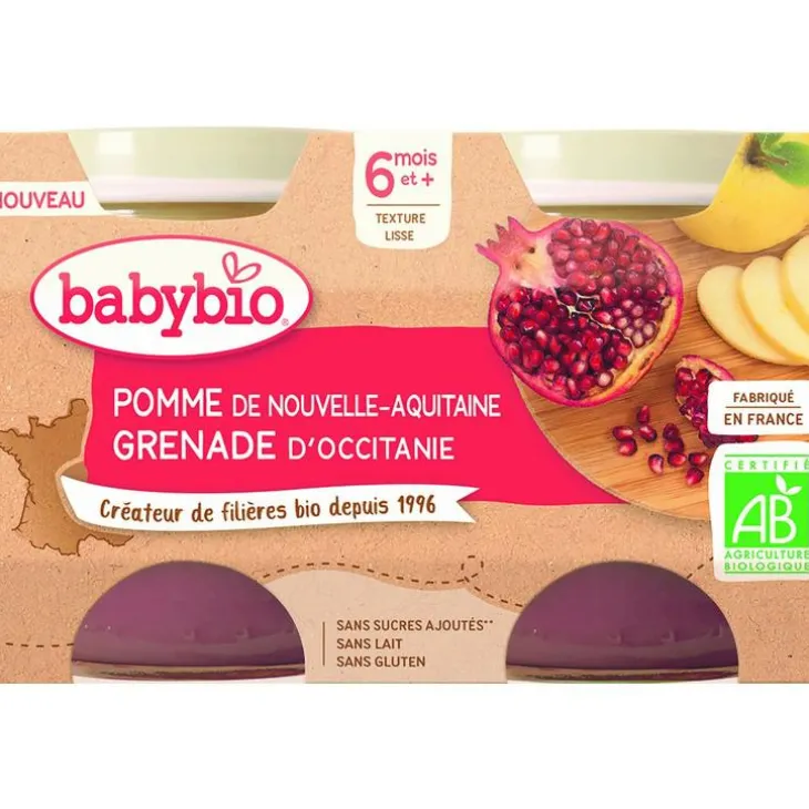 | Composition | Pomme de Nouvelle-Aquitaine* 71%, jus de grenades d’Occitanie* 25%, myrtilles sauvages de Suède*, riz de Camargue IGP*. *Ingrédients issus de l’agriculture biologique.