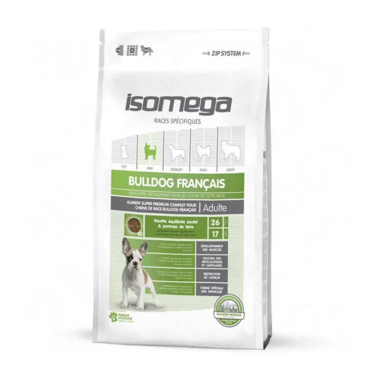 | Composition | Composition: poulet 45% (viandes moulues déshydratées de poulet (39%), poulet frais (4%), foie de poulet hydrolysé (2%)), maïs, pulpe de pommes séchée, pommes de terre (4%), graisse de poulet, levure de bière, huile de saumon (2%), farine de pois, manno-oligosaccharides (180 mg/kg), fructo-oligosaccharides (120 mg/kg), yucca schidigera (100 mg/kg). Additifs nutritionnels par kg : vitamine A (3a672a) 18 000 UI, vitamine D3 (3a671) 1 500 UI, vitamine E (?-tocophérol) (3a700) 500 mg, Biotine (3a880) 0,6 mg, Chélate de zinc et d’acides aminés hydraté (3b606) 85 mg, Fer (3b106) 72 mg, Chélate de manganèse d’acides aminés hydraté (3b504) 35 mg, Iodure de potassium (3b201) 0,65 mg, Chélate de cuivre(II) et d’acides aminés, hydraté (3b406) 15 mg, Sélénium (3b810) 0,18 mg. Contient des antioxydants approuvés par l’Union Européenne : extraits de tocophérols issus d’huiles végétales (1b306(i)), palmitate d’ascorbyle (1b304) et extrait de romarin.