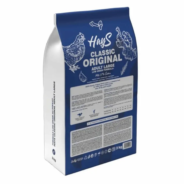 | Composition | Composition : Protéine de poulet (35 %), maïs, pulpe de pomme séchée, avoine, graisse de volaille, levures, foie de poulet hydrolysé (2 %), huile de saumon (1 %), farine de pois, glucosamine (0,02 %), sulfate de chondroïtine (0,014 %), mannaneoligosaccharides (0,012 %), extraits végétaux naturels (0,012 % – clou de girofle, romarin, curcuma et citron), fructo-oligosaccharides (0,008 %), yucca schidigera (0,008 %).