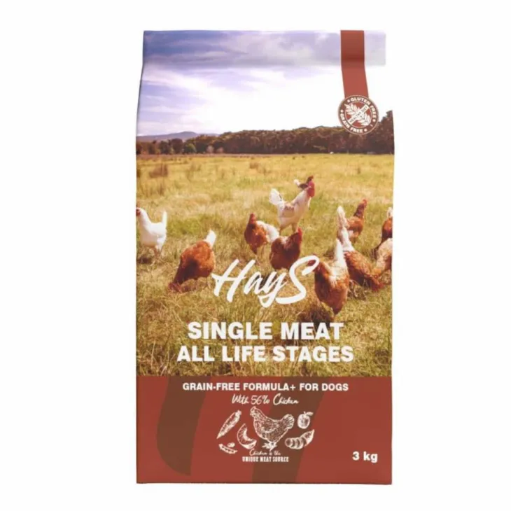 | Composition | Composition : Protéine de poulet (40 %), pois, poulet frais (14 %), patates douces, graisse de volaille, pulpe de pomme séchée, citrouille, foie de poulet hydrolysé (2 %), carottes, kelp séché (Ascophyllum nodosum), farine de pois, glucosamine (0,026 %), sulfate de chondroïtine (0,018 %), mannane-oligosaccharides (0,015 %), extraits végétaux naturels (0,015 % – clou de girofle, romarin, curcuma et citron), fructo-oligosaccharides (0,01 %), yucca schidigera (0,01 %).