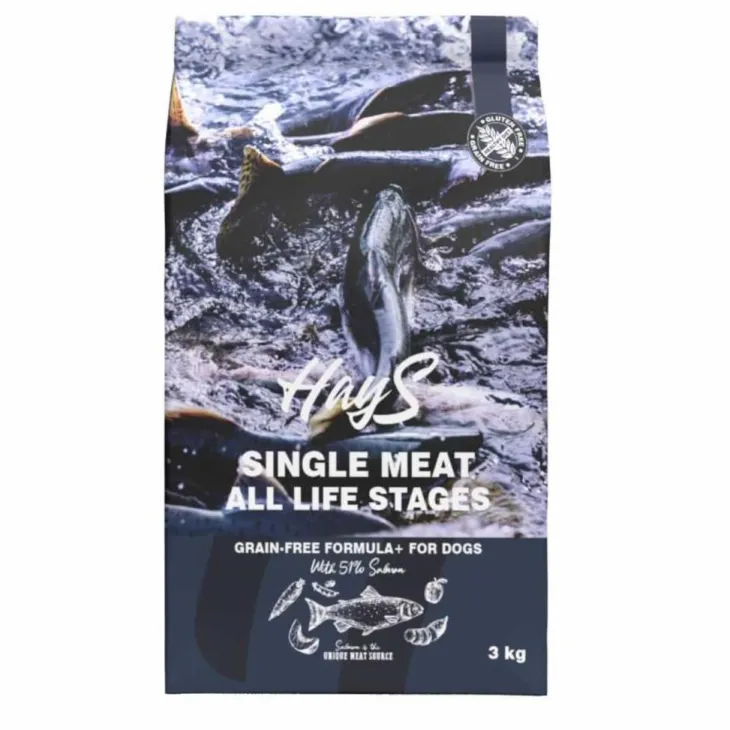 | Composition | Composition : Protéine de saumon (35 %), pois, saumon frais (14 %), patates douces, graisse de volaille, pulpe de pomme séchée, citrouille, protéine de saumon hydrolysée (2 %), carottes, kelp séché (Ascophyllum nodosum), farine de pois, glucosamine (0,026 %), sulfate de chondroïtine (0,018 %), mannaneoligosaccharides (0,015 %), extraits végétaux naturels (0,015 % – clou de girofle, romarin, curcuma et citron), fructo-oligosaccharides (0,01 %), yucca schidigera (0,01 %).