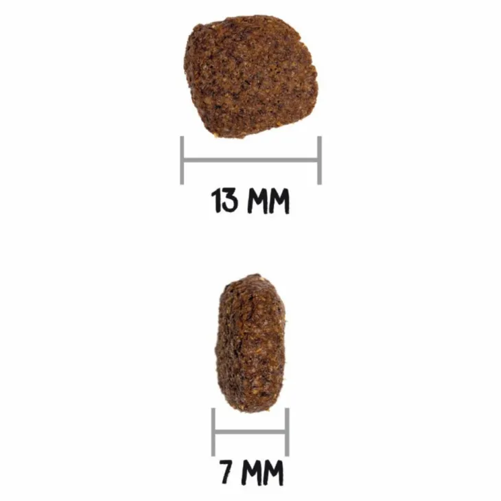 | Constituants analytiques | Protéine: 36%, teneur en matières grasses: 14%, cellulose brute: 4%, matière inorganique: 9%, humidité: 8%, Oméga 6: 3,2%, Oméga 3: 0,5%, calcium: 1,6%, phosphore: 1,1%.