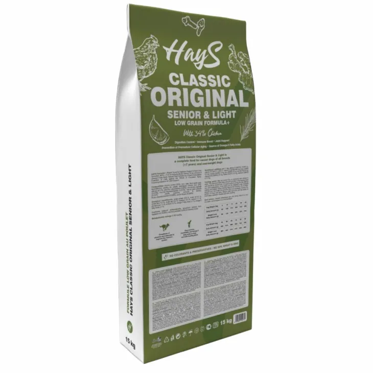 | Composition | Composition : Protéine de poulet (32 %), maïs, avoine, pulpe de pomme séchée, lignocellulose, graisse de volaille, levures, foie de poulet hydrolysé (2 %), huile de saumon (1 %), farine de pois, glucosamine (0,02 %), sulfate de chondroïtine (0,014 %), mannaneoligosaccharides (0,012 %), extraits végétaux naturels (0,012 % – clou de girofle, romarin, curcuma et citron), fructo-oligosaccharides (0,008 %), yucca schidigera (0,008 %).