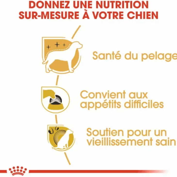 | Composition | Composition : proteines de volaille deshydratees, riz, farine de maïs, graisses animales,isolat de proteines vegetales*, pulpe de betterave, hydrolysat de proteines animales, sels mineraux, huile de soja, huile de poisson, levures et composants de levures, fructo-oligo-saccharides (0,34 %), hydrolysat de levure (source de manno-oligo-saccharides), huile de bourrache, extraits de levure (source de beta-glucans), extrait de rose d’inde (source de luteine). *l.i.p. : proteine selectionnee pour sa tres haute digestibilite.