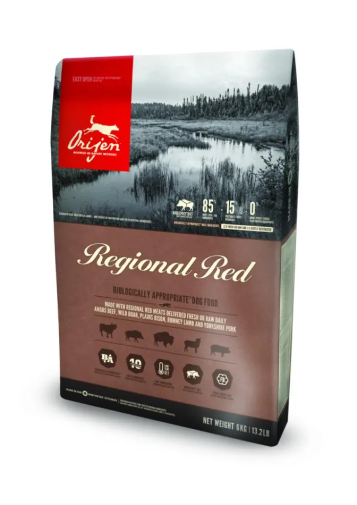 | Composition | ORIJEN Regional Red regorge de boeuf Angus, de sanglier, de bison des Plaines, d’agneau Romney et de porc Yorkshire, élevés dans des ranchs de l’Alberta. Tous sont livrés FRAIS ou CRUS dans des proportions WholePrey TM pour offrir un régime complet à votre chien.Boeuf angus frais (11%), sanglier entier frais (4%), bison des prairies frais (4%), agneau de race romney frais ou cru (4%), porc yorkshire frais (4%), foie de boeuf frais (4%), tripes de boeuf fraîches (4%), sardines entières fraîches (4%), oeufs entiers frais (4%), foie de sanglier frais (4%), agneau (déshydraté, 4%), boeuf (déshydraté, 4%), hareng entier (déshydraté, 4%), mouton (déshydraté, 4%), porc (déshydraté, 4%), foie d’agneau frais (3,5%), tripes d’agneau frais (3,5%), sardines entières (déshydratées, 3%), foie de porc frais (3%), lentilles rouges, lentilles vertes, pois verts, fibre de lentilles, pois chiches, pois jaunes, haricots pinto, gras de boeuf (1%), gras de porc (1%), huile de hareng (1%), cartilage de boeuf (déshydraté, 1%), foie de boeuf (lyophilisé), tripes de boeuf (lyophilisées), foie d’agneau (lyophilisé), tripes d’agneau (lyophilisées), citrouille entière fraîche, courge musquée entière fraîche, courgettes fraîches, panais frais, carottes fraîches, pommes red delicious fraîches, poires bartlett fraîches, chou vert frisé frais, épinards frais, feuilles de betteraves fraîches, feuilles de navet fraîches, varech brun, canneberges entières, bleuets entiers (myrtilles), baies de saskatoon entières, racine de chicorée, curcuma, chardon marie, racine de bardane, lavande,racine de guimauve, fruits de l’églantier. ADDITIFS NUTRITIONNELS (par kg) : Chélate de zinc : 100 mg. Additifs zootechniques : Enterococcus faecium NCIMB10415: 600×10ý6 CFU.Composition : Protéines 38 % Matières grasses 18 % Cendres brutes 9 % Fibres brutes 5 % Humidité 12 % Calcium / Phosphore 2 % / 1,4 % Omega-6 / Omega-3 2,3 % / 1 % ADH / AEP 0,2 % / 0,15 % Glucosamine 400 mg/kg Chondroïtine 250 mg/kg Répartition des calories : Énergie métabolisable : 3860 kcal/kg (465 kcal pour une tasse de 250 mL/120 g). Répartition des calories pour maintenir une excellente forme: 39% de protéines, 19% de légumes et de fruits, et 42% de matières grasses.