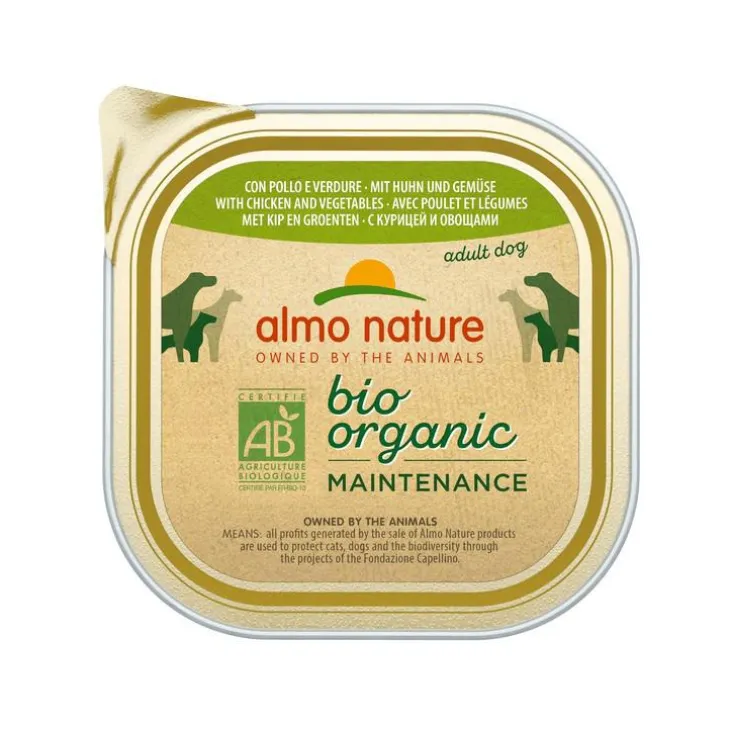 | Composition | viandes* et sous-produits animaux* (poulet* min. 4%), légumes* 4% (petit pois* et carottes*), céréales*, extraits de protéines végétales*, substances minérales. Additifs – additifs nutritionnels : vit. D3 (3a671) 227 IU/kg, vit. E (3a700) 436 mg/kg, vit. B1 (3a821) 218 mg/kg. *BIO. 100% des matières premières agricoles sont issues de l’agriculture biologique – FR-BIO-10