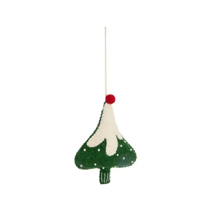 Décoration à suspendre sapin en feutrine verte et blanche - 4 x 5,5 cm