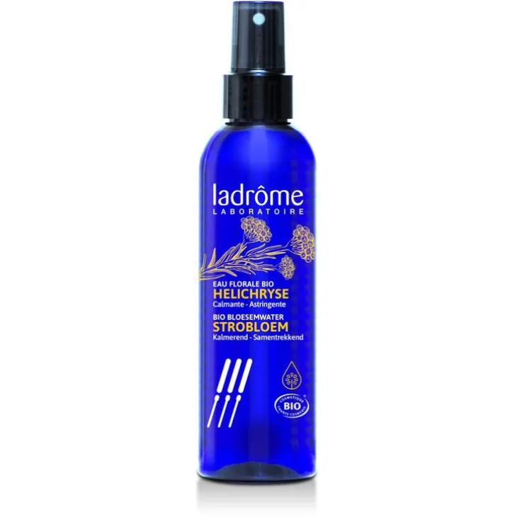 | Composition | Helichrysum italicum flower water*, benzyl alcohol, dehydroacetic acid. *ingrédients issus de l’Agriculture Biologique. 99,4% du total des ingrédients sont d’origine naturelle. 99,4% du total des ingrédients sont issus de l’Agriculture Biologique.
