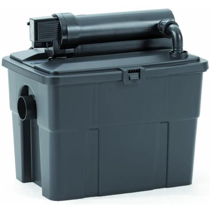 | Conseils d’entretien | Rincez régulièrement les mousses du filtre avec de l’eau du bassin. Introduisez des bactéries d’entretien après rinçage.La lampe UVC doit être remplacée tous les ans.