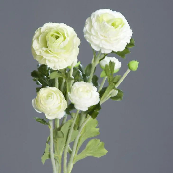 Fleur artificielle renoncule blanche x 3 avec feuillage vert – 62 cm