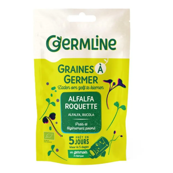 | Composition | 95% graines d’alfalfa (luzerne)* (Medicago sativa) – 5% graines de roquette* (Eruca sativa)