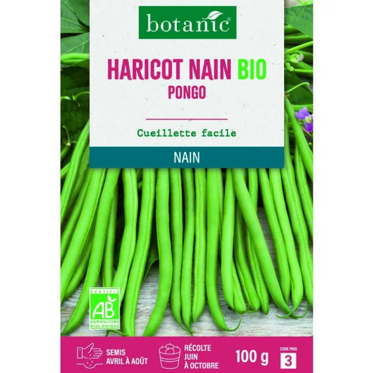 | Variété | Haricot nain pongo extra-fin sans fil bio
