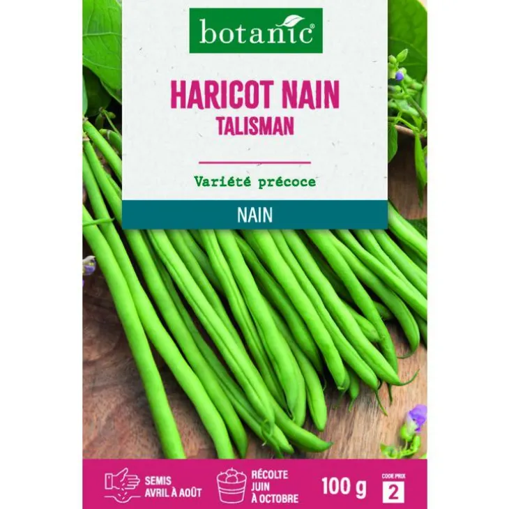| Conseils d’entretien | Binez une première fois quelques jours après la levée, puis effectuez un deuxième binage 3 seMaines plus tard.Recouvrez le pied de terre. Arrosez régulièrement pendant la floraison et la formation des gousses.