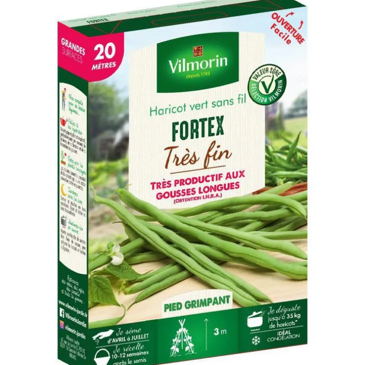 | Conseils d’entretien | Quelques jours après la levée, travailler légèrement la terre en surface (biner) afin de l’aérer et d’éliminer les mauvaises herbes. Lorsque les pieds de haricots font 10-12 cm de hauteur, biner une seconde fois puis ramener un peu de terre au pied des haricots (butter). Récolter 10 à 12 semaines après le semis, tous les 3 à 4 jours et pendant 4 à 6 semaines. Moyen