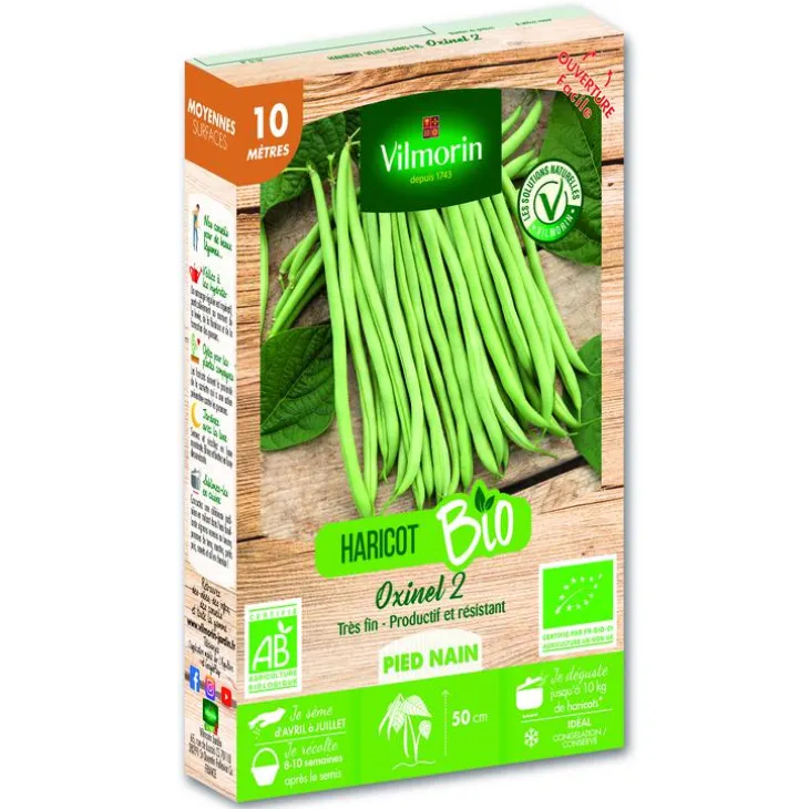 | Conseils d’entretien | Quelques jours après la levée, travailler légèrement la terre en surface (biner) afin de l’aérer et d’éliminer les mauvaises herbes. Lorsque vos plants de haricots font 10 à 12 cm, biner une seconde fois puis ramener un peu de terre à leurs pieds (butter).
