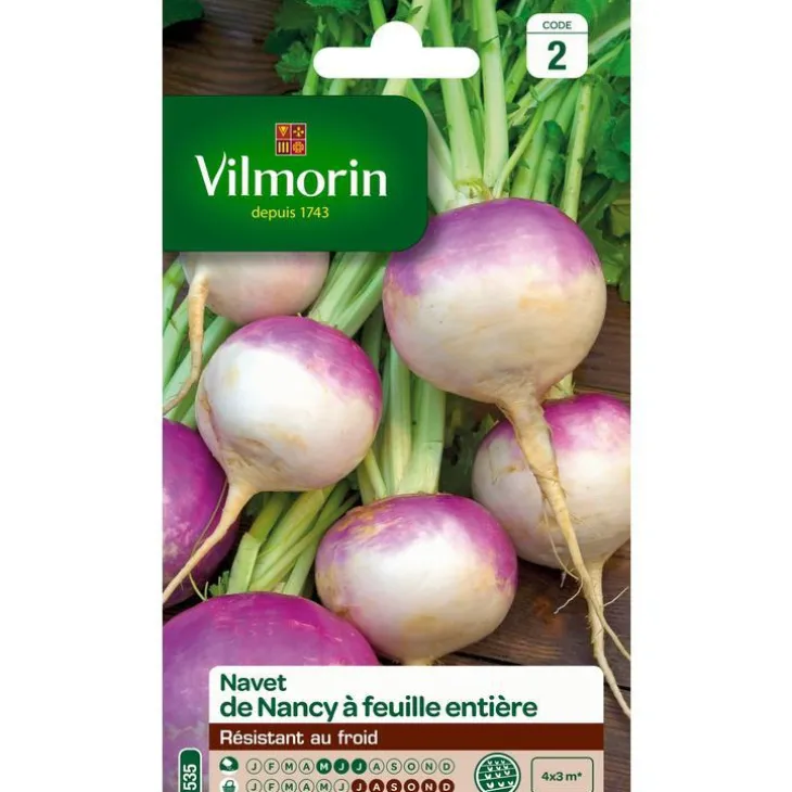 | Conseils d’entretien | Quand vos navets ont 3-4 feuilles, arrachez les plants les plus petits. Conservez uniquement les plus vigoureux, afin de ne laisser qu’un navet tous les 10-15 cm. Récoltez de juillet à mi-décembre. 0