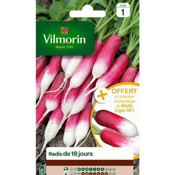 | Conseils d’entretien | Au stade 3-4 feuilles, éclaircissez en arrachant les plus petits plants, pour ne laisser qu’un radis tous les 3 à 5 cm. Récoltez 3 à 7 semaines après le semis. Modéré