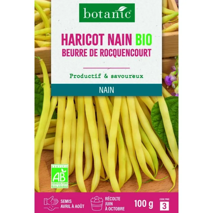 Graines d’haricot nain beurre de rocquencourt bio botanic® – graines à semer 100 g