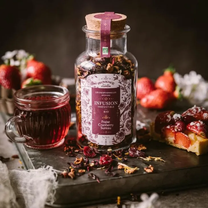 | Composition | pomme, hibiscus, cranberry, cynorrhodon, fraise, arome naturel de fraise bio , stevia, arome naturel de sureau bio, fleur de tournesol, fleur de sureau