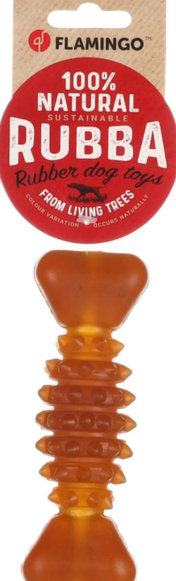 Jouet pour chien en caoutchouc naturel coloris marron os avec épines Flamingo Rubba – Taille M 14 x 4,7 x 4 cm
