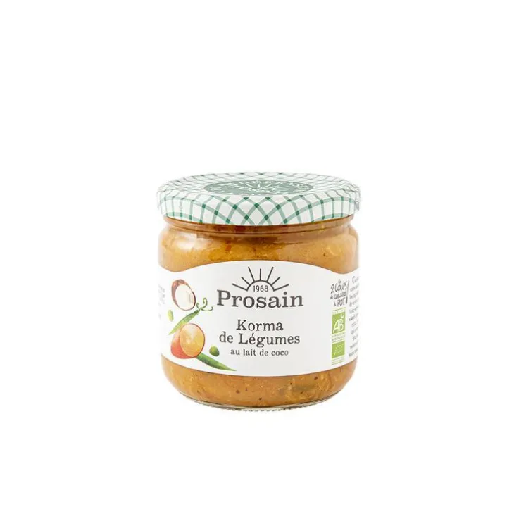 | Composition | Légumes* 55% (oignons*, haricots verts* 11%, patate douce* 10%, carotte* 7%, petits pois* 6%), pulpe de tomate*, lait de coco* 10%, crème fraîche *, fécule de pomme de terre*, huile d’olive* vierge extra extraite à froid, noix de coco* râpée 2%, épices* 0,9%, sucre de canne* non raffiné, sel de mer, jus de citron concentré*, pulpe d’ail*, coriandre*, laurier poudre*, graines de moutarde*.
