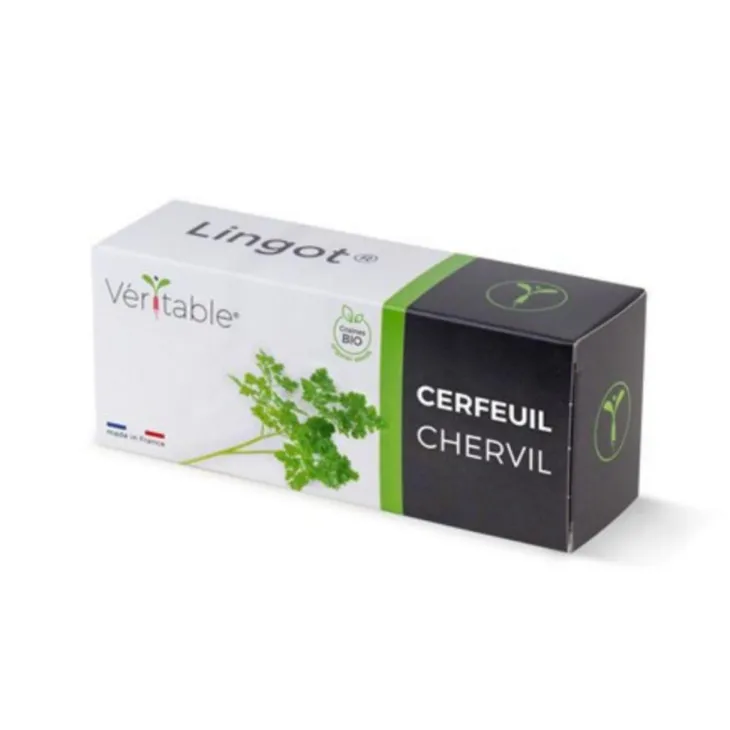 | Conseils d’entretien | Conservation à une température entre 10 et 15°C. Eviter humidité, poussière et chaleurQuand remplacer un Lingot® ?Lorsque votre plante ne produit plus assez, qu’elle ne repousse plus après la récolte ou que son goût est moins savoureux, c’est le signe qu’il faut remplacer votre Lingot®.Comment retirer un Lingot® ?Au-dessus d’un évier : pressez le Panier pour compresser le Lingot®. Relâchez, puis secouez le Panier tête en bas ou maintenez toutes les tiges de la plante pour retirer le Lingot®.Que faire de votre Lingot® usagé ?- Le replanter dans le sol ou un pot (si la plante est encore viable).- Le composter.- Le recycler en le mélangeant avec de la terre ou du terreau.Bien nettoyer votre Potager Véritable® avant de remettre de nouveaux Lingots®