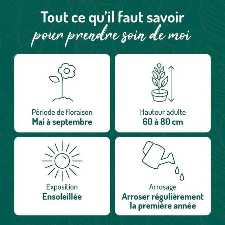 | Distance de plantation | 50 CM – 4 PLANTES/M2